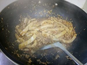 放入辣酱炒香