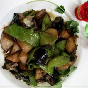 锅加少许油,放小料,加水,放主料,,调味,略烧一会,放青椒,勾芡,淋明油,装盘