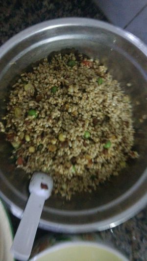 把糯米,肉肉,青豆,玉米调料搅拌好放着备用