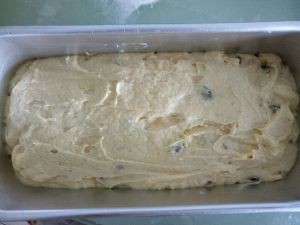 把果干和葡萄干切碎后,加入面糊里。并倒入朗姆酒和泡了芒果干的混合水一大勺。