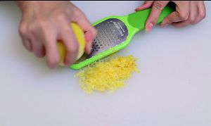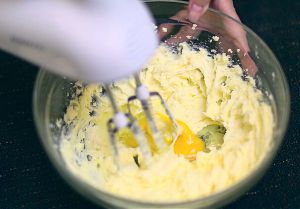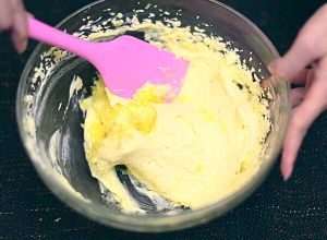 将柠檬皮屑加入到黄油糊中搅拌均匀。
