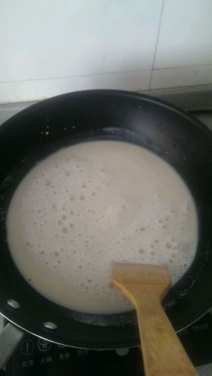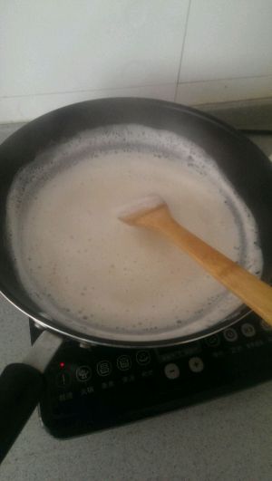 开始煮豆浆,一定要煮开,大约5.6分钟,要不停搅拌否则豆浆容易焦。