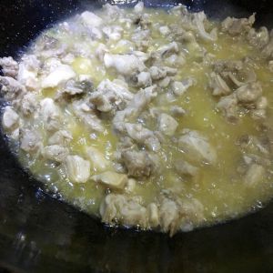 油烧热,兔肉下锅,干煸6分钟以上。不要放其他料。干煸这个步骤类似油炸