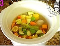 料1料2所有材料放入慢炖锅,一次性加入适量的水,大火煲开,小火慢煲2个小时以上;