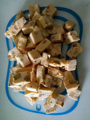 倒入准备好的花生或其他[蔓越莓干什么的都可以 看个人喜欢],搅拌。
