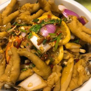 将所有切好的东西放入一个大容器内,倒入生抽、陈醋、糖、香油、盐适量,然后倒入鸡爪搅拌均匀,最后放入冰箱冷藏6小时左右,让鸡爪充分入味