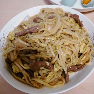 起锅烧油,把打散的鸡蛋放入炒熟了捞出备用。放入切好的火腿肠和肉丝爆炒,我觉得没有家里的羊肉香,所以还是用的鲜牛肉。牛羊肉都可以。然后倒入一点生抽,抽上色。