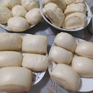 然后把做好的馒头放入蒸锅中盖上盖子静止半小时进行第二次醒发(一个个要分开的远一点)