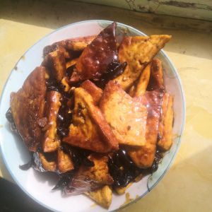 一块老豆腐,清洗一下,别挑太嫩的,容易碎