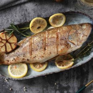 烘烤结束后取出烤盘,打开捏紧的锡纸, 食用前挤适量柠檬汁为鱼提鲜。