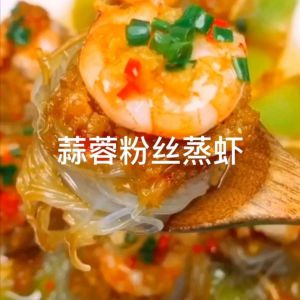 去皮的虾。炒好的蒜蓉。蒸锅上汽8分钟。