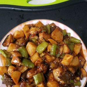 装盘,一点都不油腻而且又美味的地三鲜就做好了。