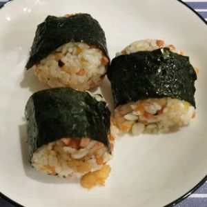 捏好裹上一片海苔就可以装盘享用啦。