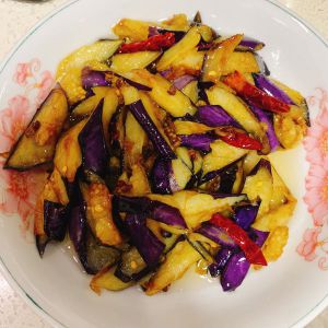 5、锅中留底油,小火放花椒和干辣椒炒香,再放酱汁,放酱汁后关火放茄子翻炒均匀后即可。