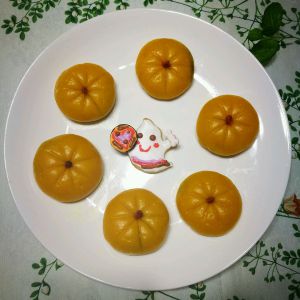 用牙签儿压出南瓜纹路,中间加颗枸杞子
