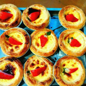 将蛋挞液放入蛋挞皮,烤箱230度烤30分钟,期间调放位置,保证上色均匀。