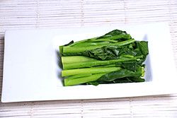 将芥蓝马在盘中淋上汁,锅置火上,加茶油烧至六成热,热油浇盘中葱花、红椒圈上即成。