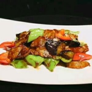 食材的处理:先将茄子、土豆、柿子椒按照3:2:1的比例切块。