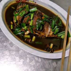 准备一个能放入整条鱼的容器,倒入酱油、鸡精、盐(正好的量)、料酒腌制十五分钟,腌制好后调味汁不要倒(留着备用)