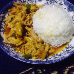 锅中热油倒入肥牛饭炒微微变色倒入洋葱(没有找到洋葱 放的青椒)一样好吃哦