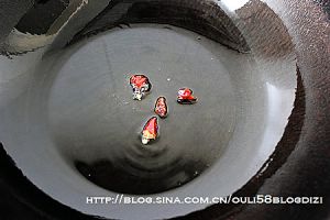 锅里放适量油,油微热后,放入半个干辣椒,
