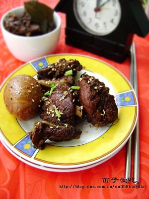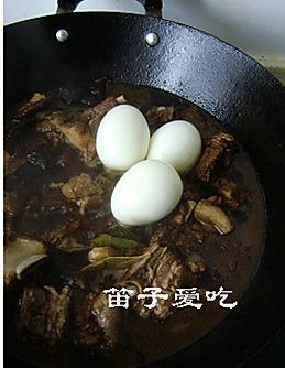 放进几个煮鸡蛋,接着炖煮,直到排骨炖烂为止,加点盐,撒入香油用大火收至汤汁浓稠
