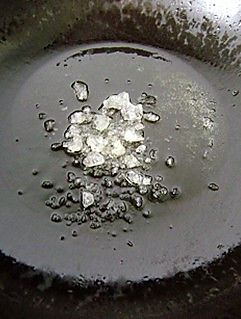 炒锅放油,油五成热时放入冰糖,烧至冰糖融化