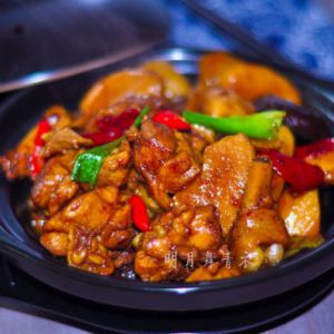 鸡腿剁块,用花雕酒、老抽、白胡椒粉腌30分钟入味。
