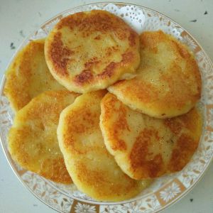 蒸熟的土豆放点盐,淀粉,打碎,压成饼!