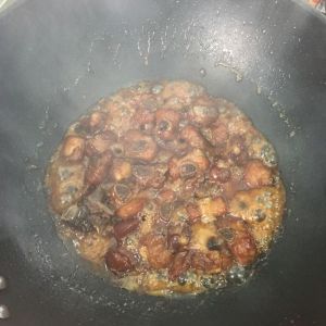 把炸好的排骨放入锅内,再把剩余的调料倒锅里,把排骨汤倒锅里,没过排骨多一点,再放三勺糖,小火焖5到8分钟,然后大火收汁,收汁的时候再放一勺陈醋