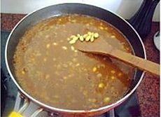 加入泡好的黄豆及适量清水熬煮至浓稠;