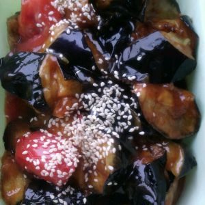 锅里放少点油,把西红柿倒入翻炒几下,在倒入调好的调料,最后倒入炸好的茄子