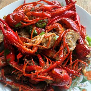 热锅倒油,加入生姜大蒜,再加入虾,翻炒几下。随后加入盐,生抽可以多一些,再加一点老抽(一点就可以了)再加上料酒(差不多快沫过龙虾就可以了)。盖上盖子用中火个闷一分半钟。