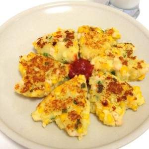 做成饼状,也可用模具作出形状。放入锅里煎至两面金黄。盛盘时再配些番茄酱即可。