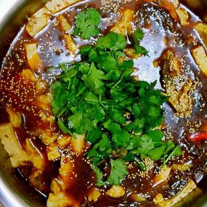 中途加入鱼头和豆腐,煮开后转中小火让豆腐入味。