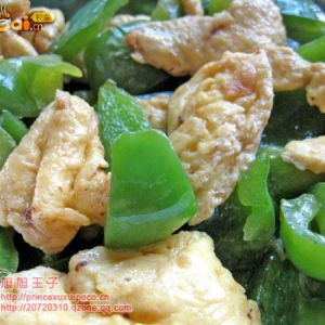 青椒洗净切成条状;蛋打匀,加点盐调味