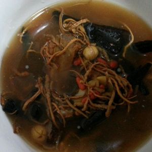 准备好灵芝片(在买的时候让商家切好),虫草花,莲子,百合,红枣以及枸杞。材料冲水洗干净,(不过灵芝我没有洗得很彻底,因为买的时候那位销售员表示灵芝什么覆盖的是袍子粉。)将洗好的材料全部放在锅里面大火煮沸后半小时,小火慢炖1小时即可~1