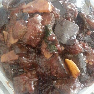 锅里放油,烧热后加入大蒜炒香,再放入茄子翻炒,然后加入生抽,老抽,加少许水,烧到茄子脱水入味后,加入味精翻炒。收汁。即可。