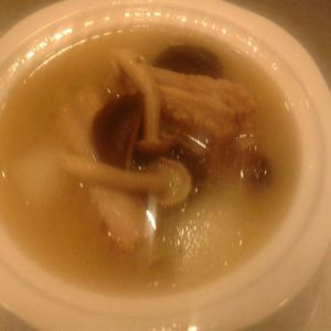 加入排骨、蘑菇和葱结,大火煸炒1分钟,然后加入热水(一定是热水,才会使排骨不会柴)