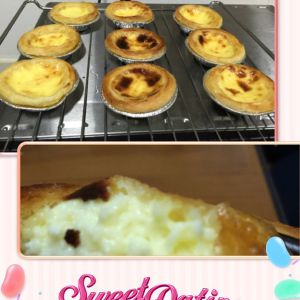 将牛奶、淡奶油、炼乳、糖。加热。待凉后放入蛋液和低筋粉。放入皮中。