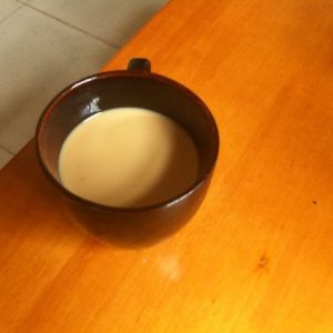 待摩卡壶烧开后,将咖啡红茶混合液加上10g糖,在倒入50g牛奶里搅拌。即可。
