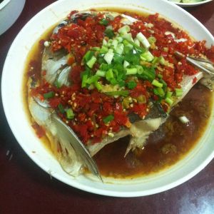 首先鱼头洗净、最好买的时候叫老板帮你把鱼头对半切一下(我就忘了、回来累死切的)、用盐把鱼抹一下、不用太多,1勺就够了,把姜切末,铺在盘子里、再把鱼头平铺进去