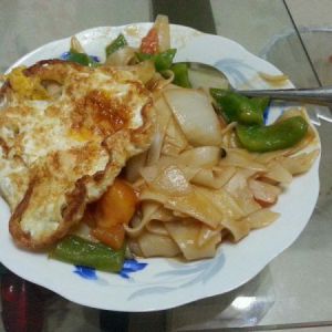 油热后先放洋葱,然后放入西红柿和番茄酱,最后放青椒和面片。加点蚝油、酱油和盐就可以出锅了。