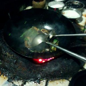 放油,(平常炒菜的量,)放入咸鱼炒香,再放入炸好的茄子青椒,,放盐,粉,米酒一汤勺(粉放入米酒里)耗油,老抽,葱段,味精,变黑(老抽原因)起锅