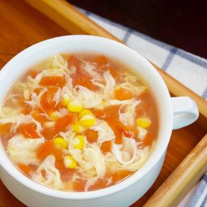 锅中加水100毫升,放入枸杞、番茄碎和玉米粒,煮5分钟