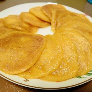 把做好的南瓜饼放入锅中小火煎熟,看到面饼鼓起来,用铲子压压没有生面挤出来就熟了