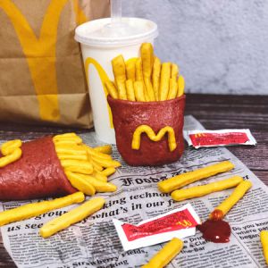 错落交叉摆在一起,营造出“薯条”随意放在薯条盒里的样子