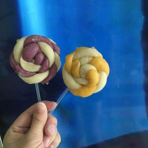 放到蒸锅里,50度水二次发酵大概15分钟,大火蒸15分钟即可。插上棒棒,炫彩棒棒糖馒头成啦!