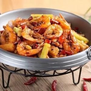 前期准备工作完成后,油锅下油加入五花肉煸熟,放入葱姜,接着加入麻辣香锅调味料,再放入所有食材翻炒均匀即可