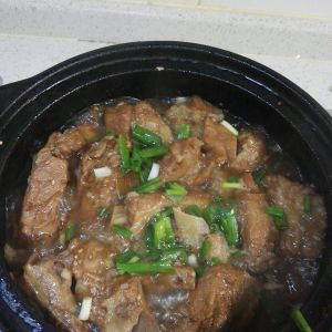 差不多在砂锅中炖煮1小时,关火前加入香葱,白芝麻,整煲端出上桌,香气扑鼻,肉质软烂,酸甜可口,